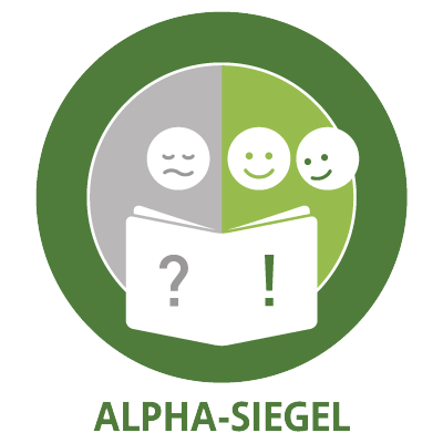 Wertvolle Anregungen, wie Ihre Einrichtung Beratungssituationen grundbildungssensibel gestalten kann, bietet das Alpha-Siegel. Diese Initiative unterstützt Beratungseinrichtungen in Berlin und Baden-Württemberg in ihrem Qualitätsmanagement und macht für gering literalisierte Erwachsene sichtbar, dass sie an diesem „Ort“ willkommen sind.